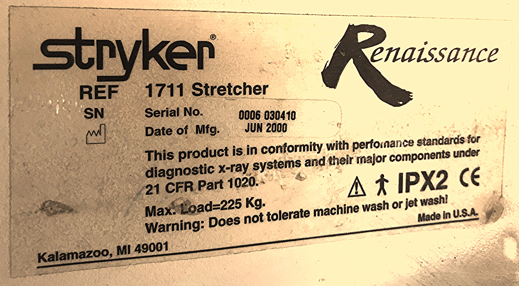 Technical Data from the Manufacturer on this 1711 RENAISSANCE PACU STRETCHER can be found online at https://techweb.stryker.com/Stretcher/1211_1711/9802/operation/1210-090-101K.pdf
