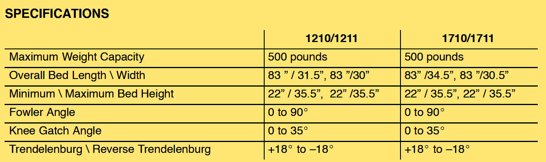.Maximum Patient Weight: 500 lb (226.8 kg)