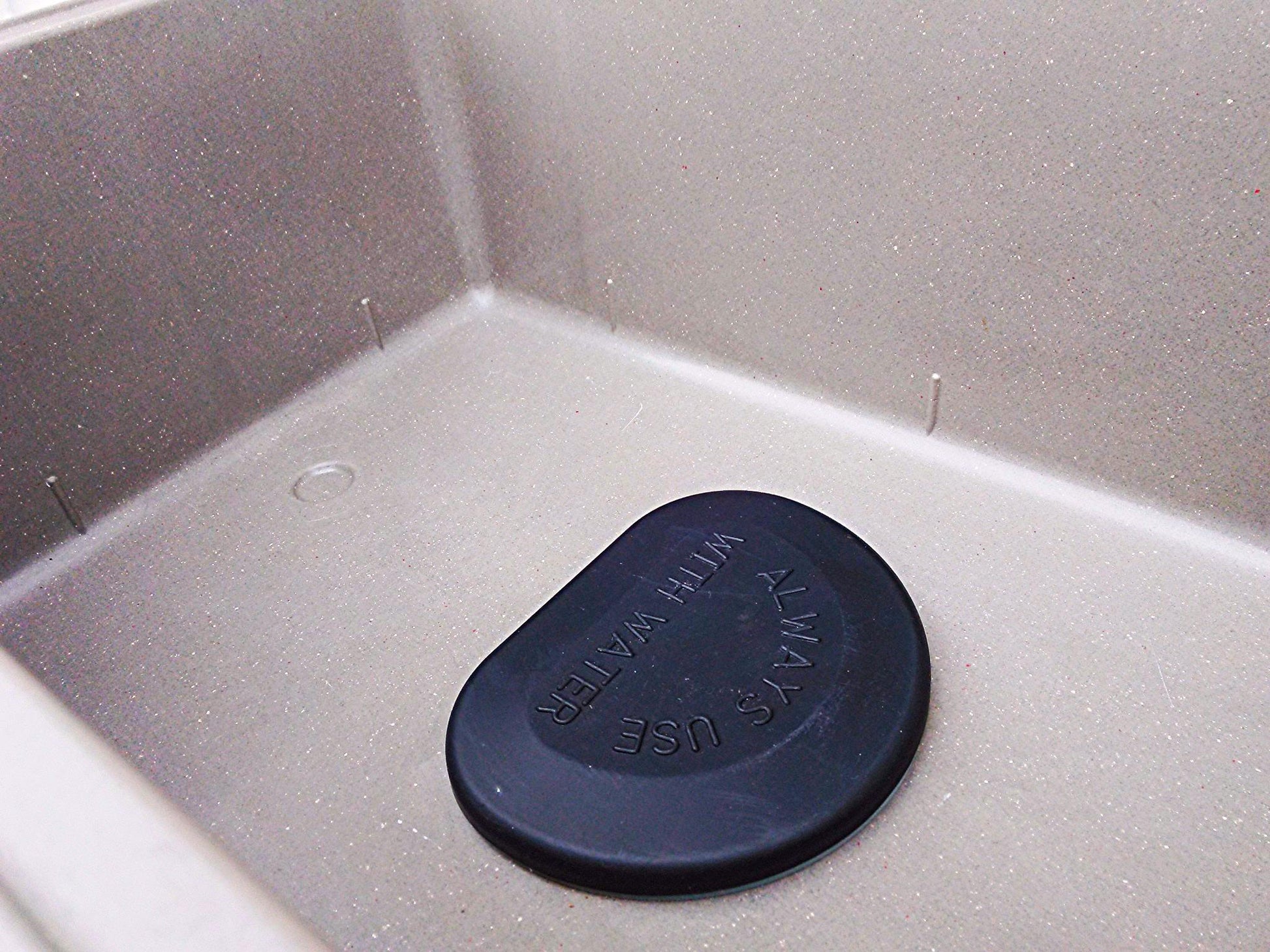 - Handsome gray granite well with wide, no-drip lip