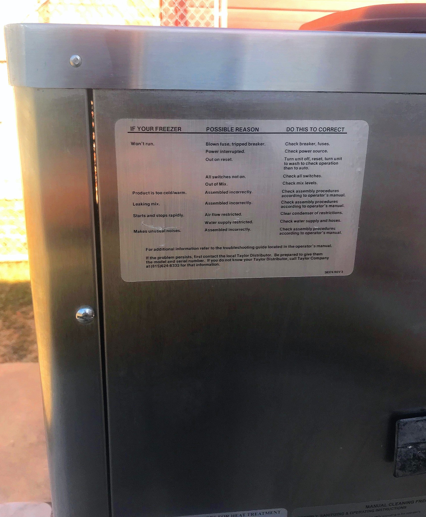 The three Ice Cream Draw Handles are missing as can be seen in the pictures, they cost $84 each online at https://www.softserveparts.com/i-26471696-x56421-1-draw-handle-complete-taylor-crown-series.html?matchtype=&network=g&device=c&adposition=1o2&keyword=&campaign=857601493&adgroup=43213108253&gclid=CjwKCAiA3vfgBRB9EiwAkfpd3H7XkF-l61ZK-OXV5YyJ1KcbS_mHEncA9nHzoNu4hLbnl24_ph-EwBoC4S4QAvD_BwE