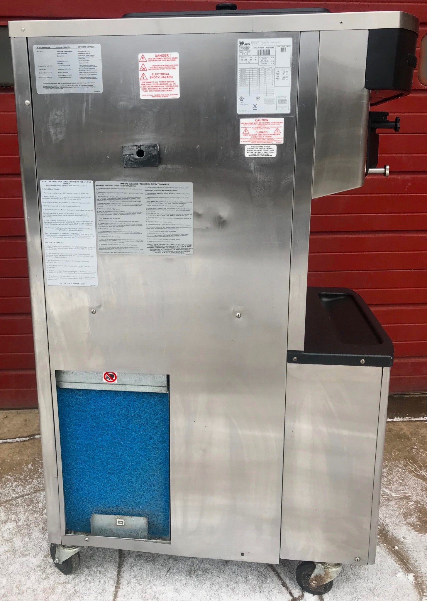 This listing is for an Unknown Operational Condition TAYLOR CROWN C717‑33 YOGURT & ICE CREAM SHAKE & SOFT SERVE FREEZER ON WHEELS as can be seen in the pictures.