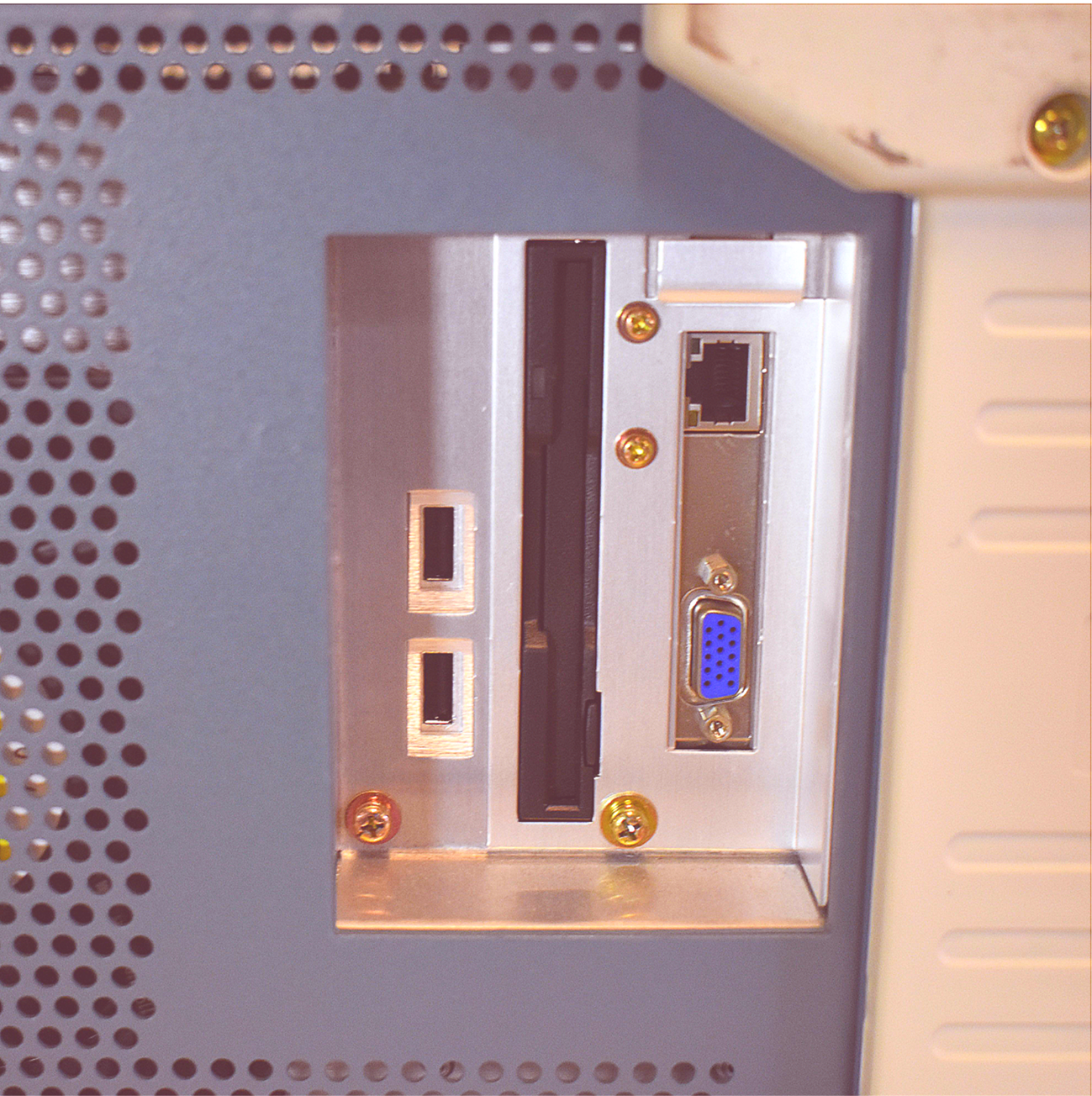 Side panel inputs/outputs: LAN Ethernet connector (10/100BASE-T), VGA Connector, and 2 X USB connectors (USB 1.1).