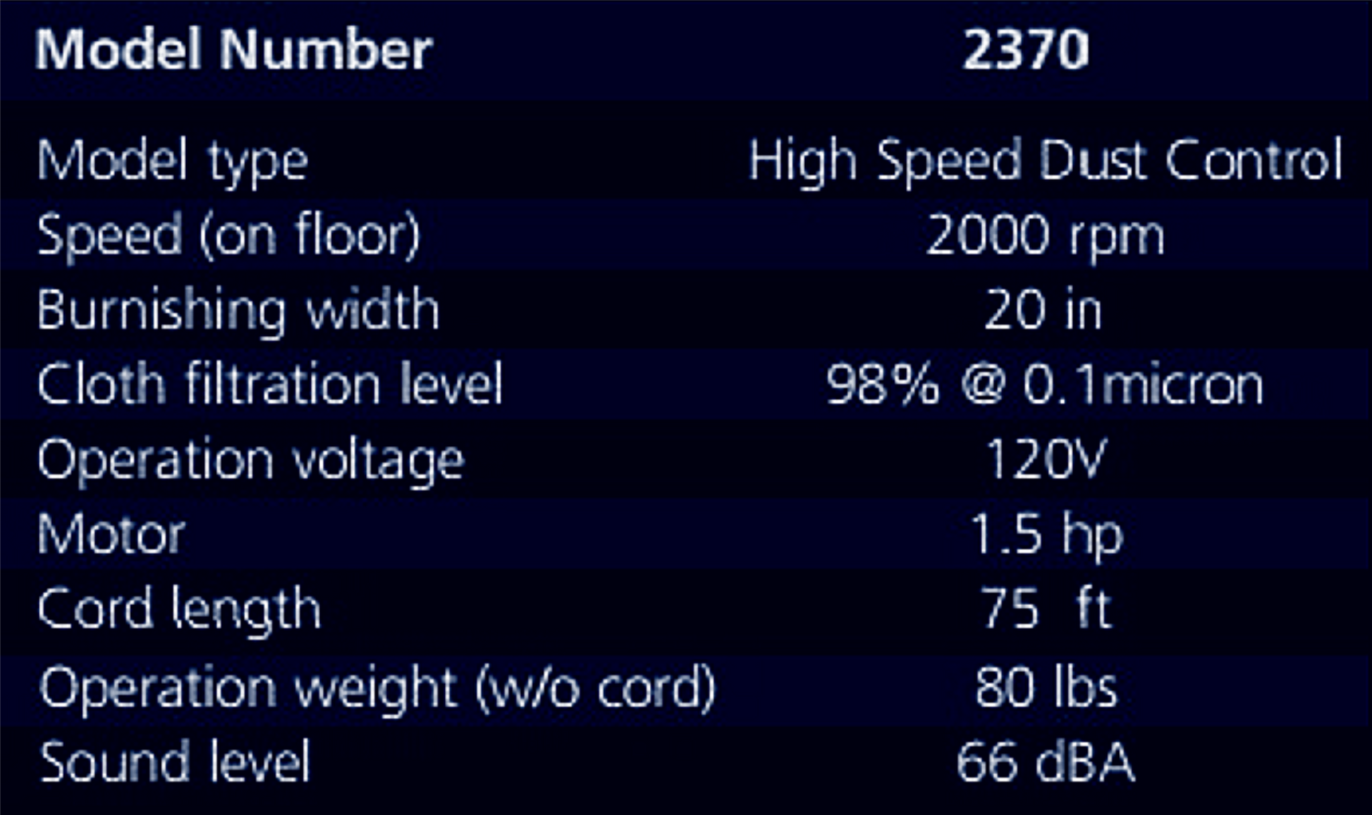 Key machine features of the 2370 High Speed Floor Burnisher with Dust Control: