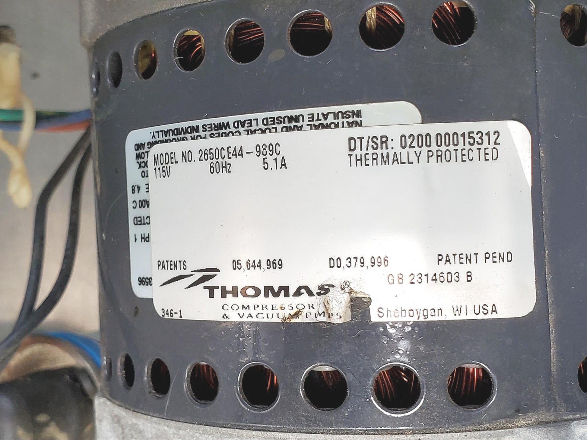 THOMAS 2650CE44-989C PISTON AIR COMPRESSOR VACUUM PUMP WATCH VIDEO FREE SHIP