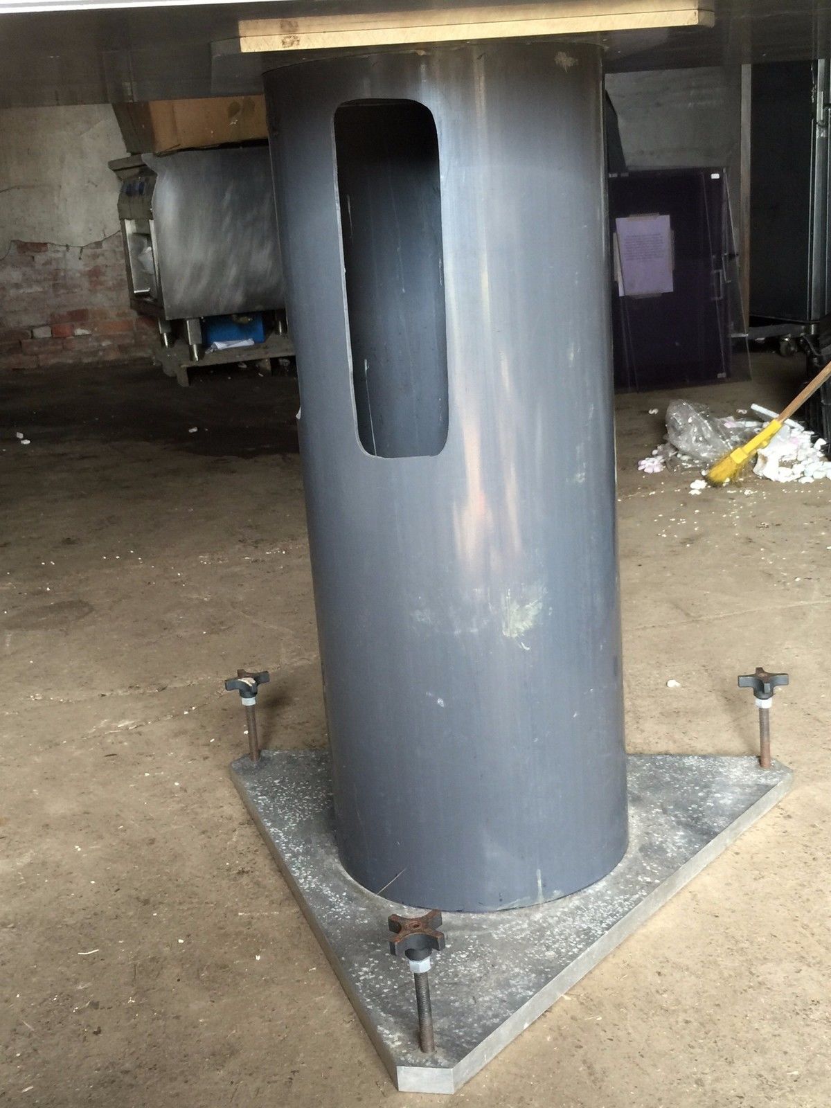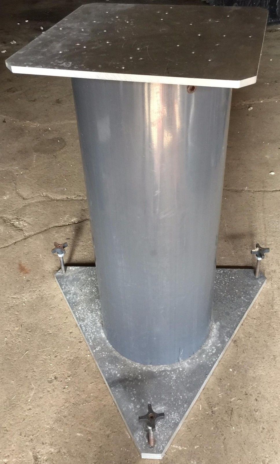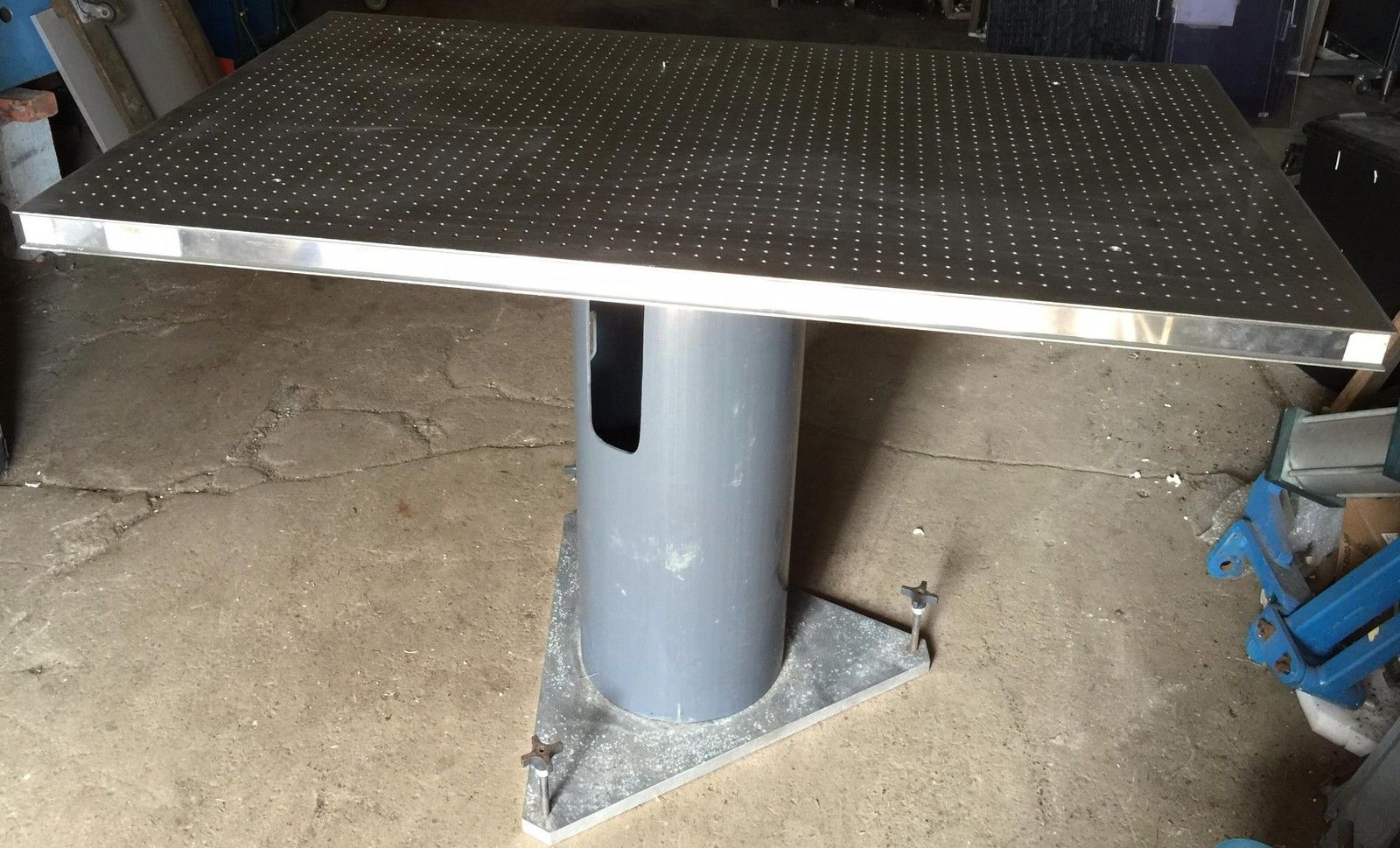 Table is 304L nonmagnetic steel with 4 through drilled port holes for cable managemente as can be seen in the pictures.