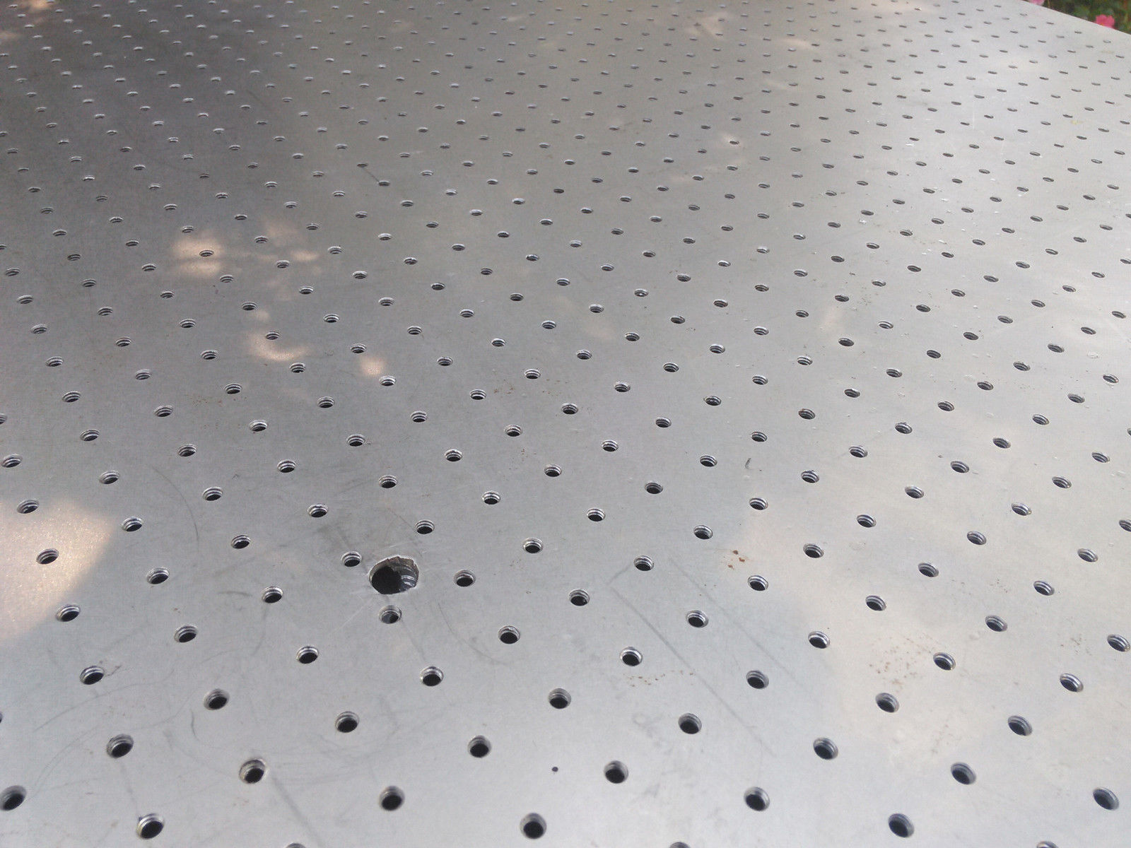 This optical table is constructed of 304L grade stainless steel. This alloy of steel contains less iron than typical stainless steel, which reduces its ferromagnetic properties.
