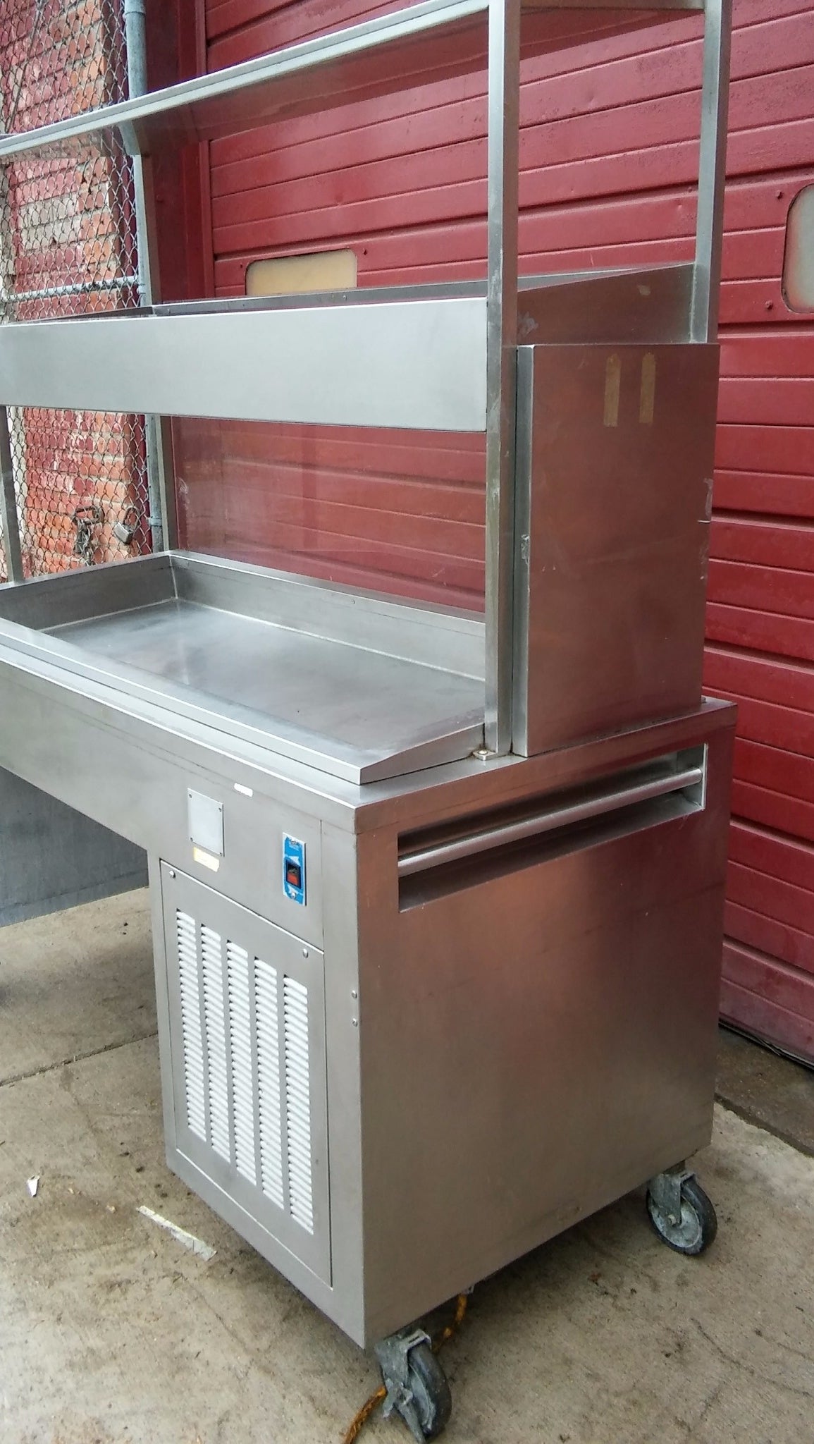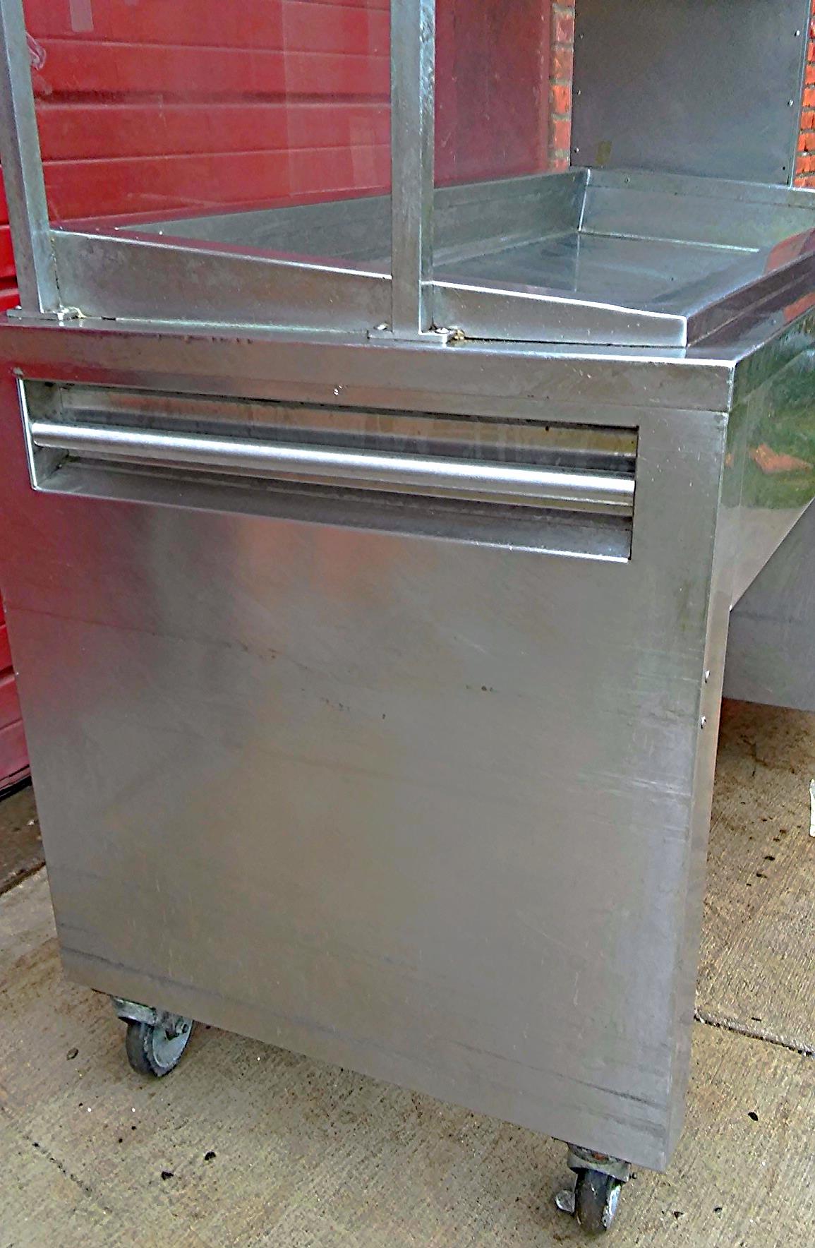 MOBILE COLD SERVING UNIT WITH GLASS PROTECTION ON THE BOTTOM SHELF TRAY