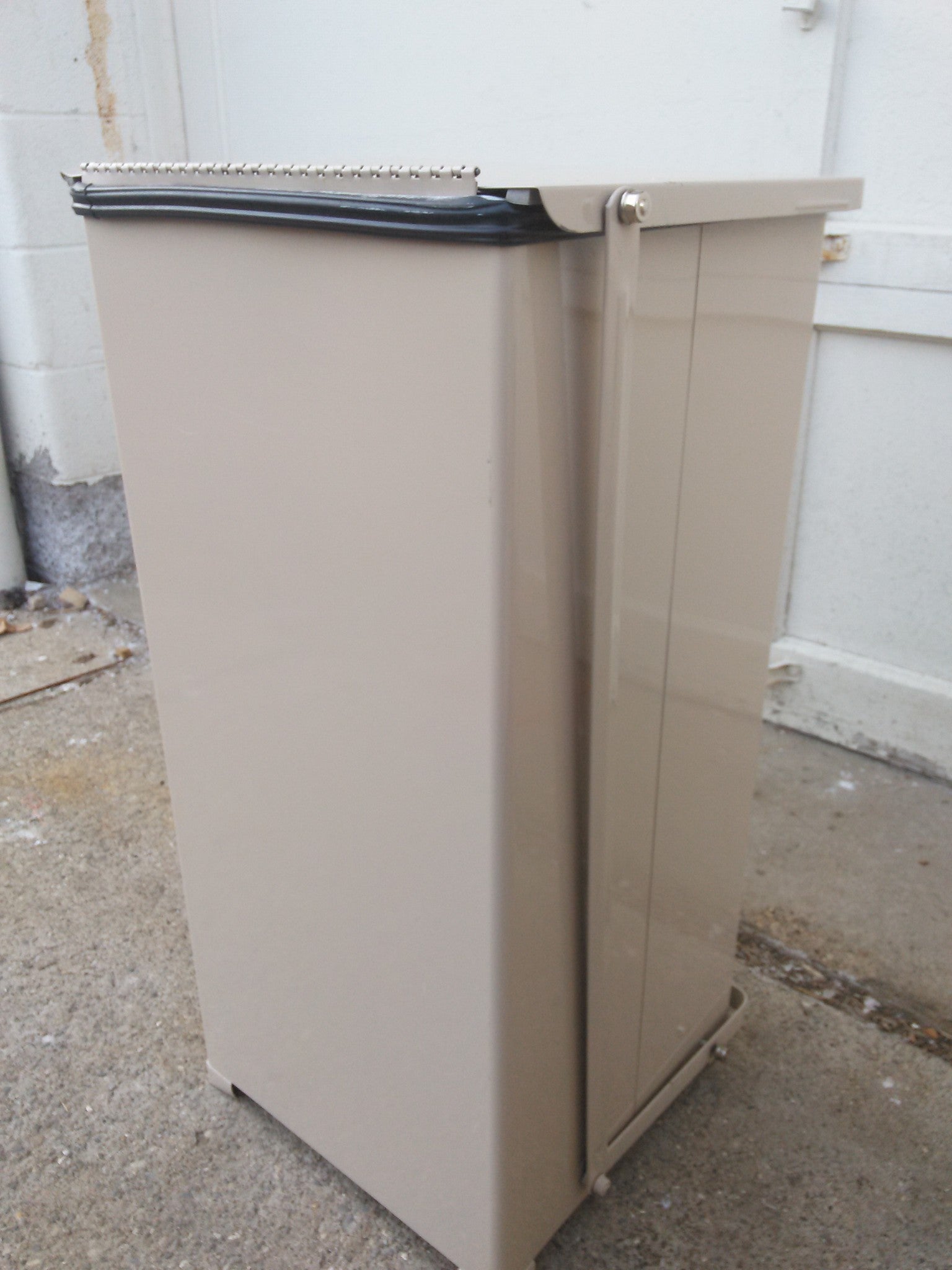 Crafted with the highest standards, this United Receptacle by Rubbermaid container also features a self-stopping, piano hinged lid that prevents damage to equipment and walls.