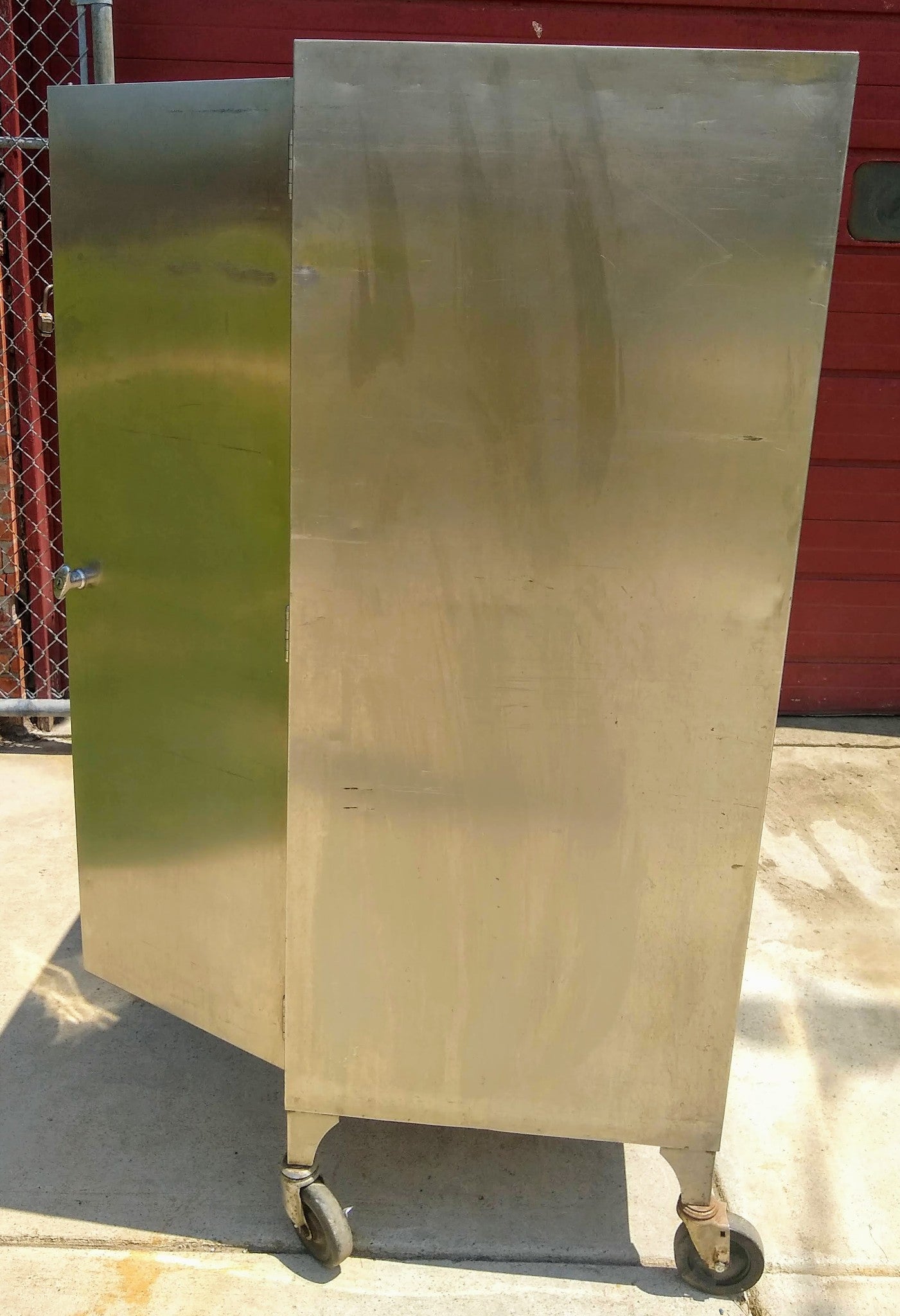 This listing is for a RARE VINTAGE LARGE STAINLESS STEEL CABINET with 5 SHELVES on wheels with 2 Doors as can be seen in the pictures.