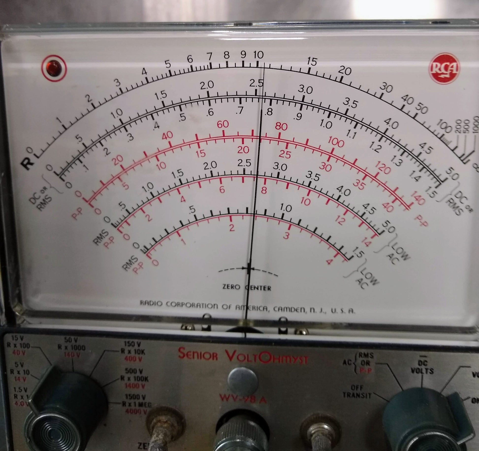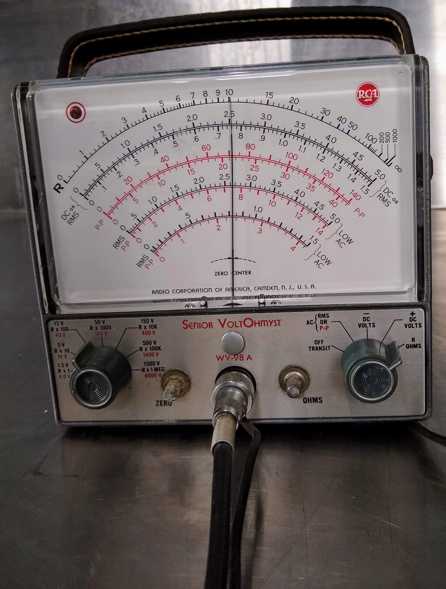 This Vintage RCA Senior VoltOhmyst WV-98A 105-125 Volts Electronic Meter No Probe is in excellent condition.