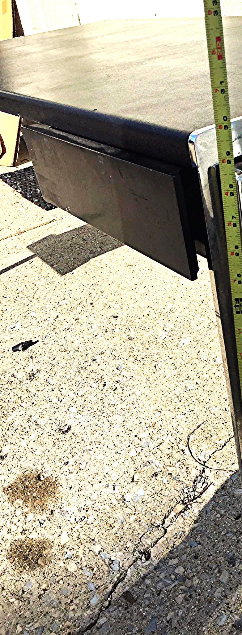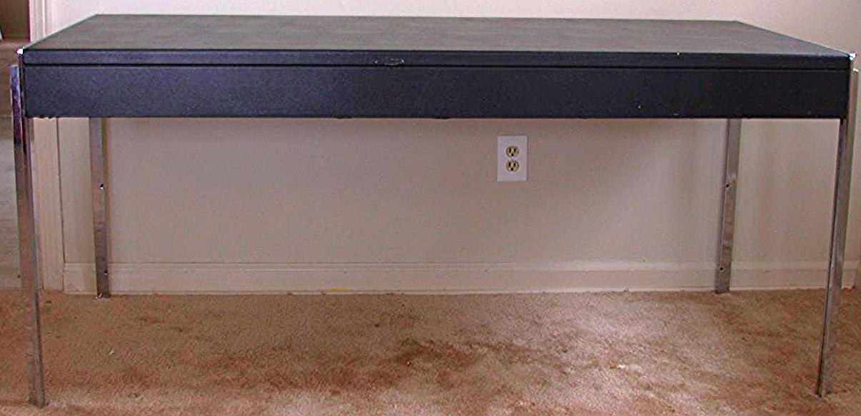 This VINTAGE STOW DAVIS BLACK LEATHER DESK w 2 DRAWERs 65x29x30 in stock and available to be shipped once payment is received and cleared.