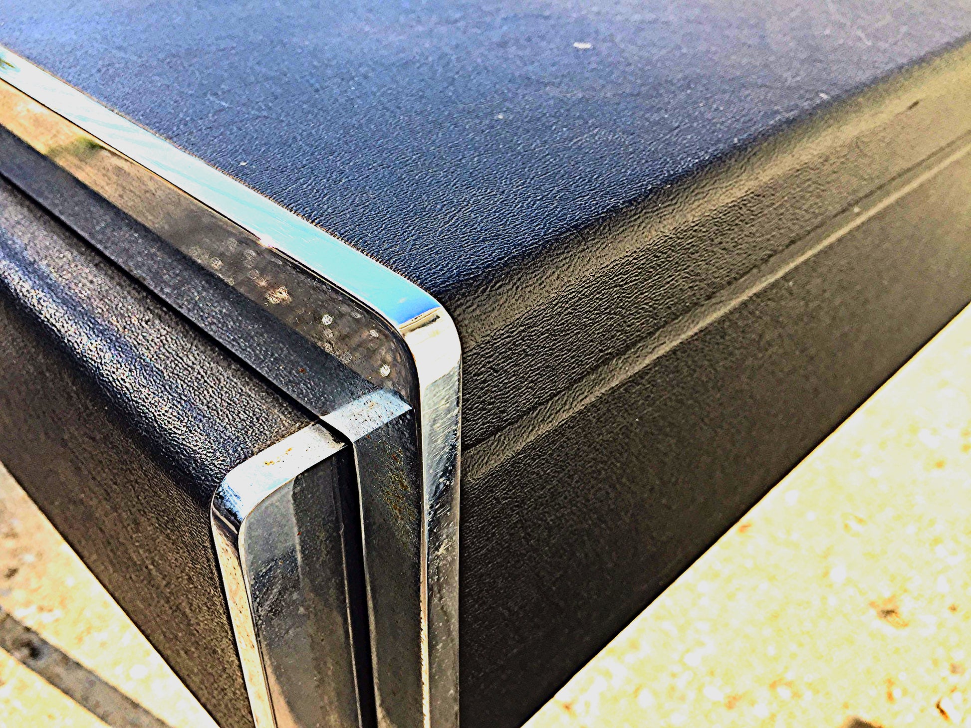 VINTAGE STOW DAVIS BLACK LEATHER & METAL DESK w 2 DRAWERs 65 x 29 x 30 FREE SHIP