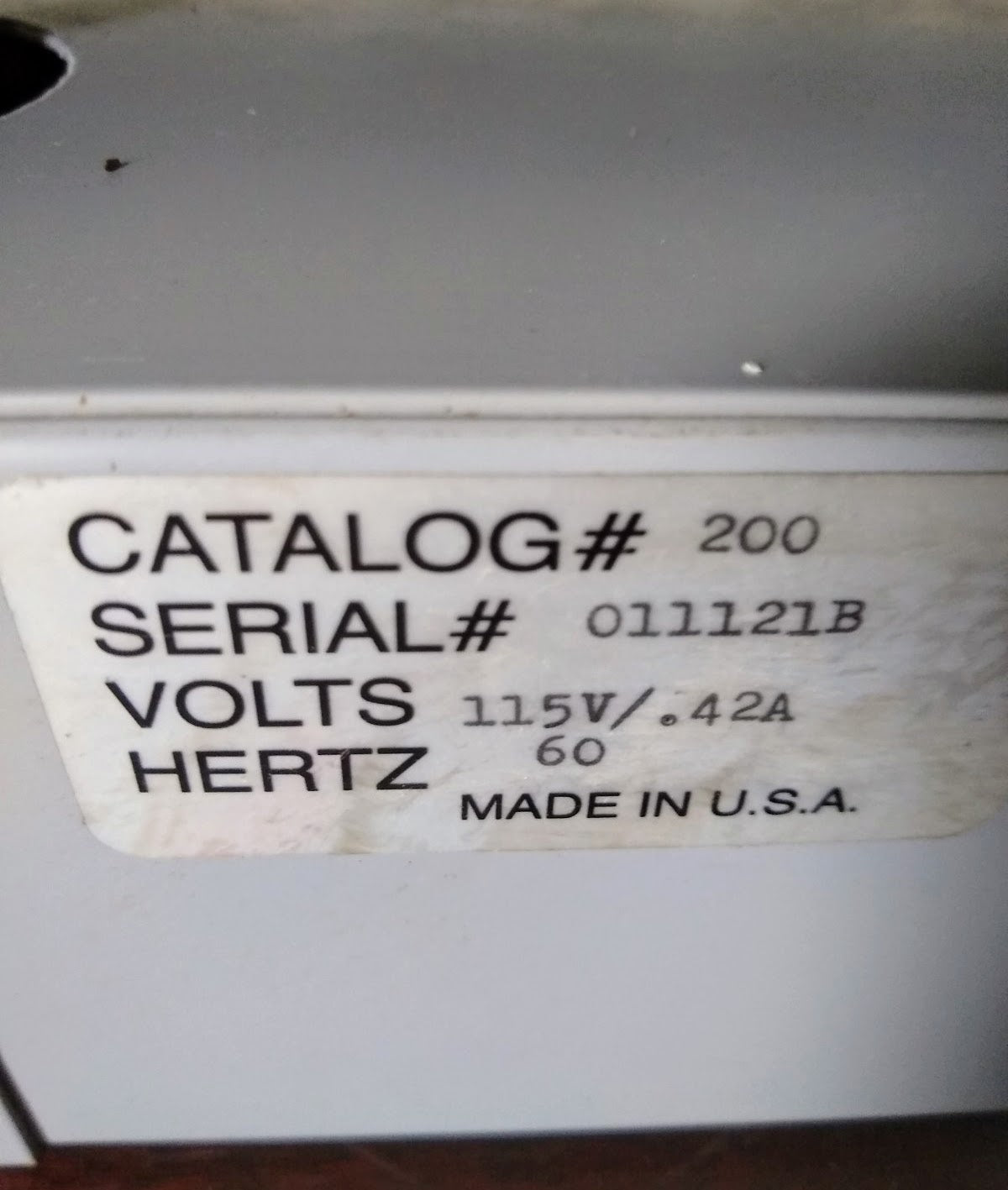 Electrical Requirements 115V, 60Hz, 0.42A